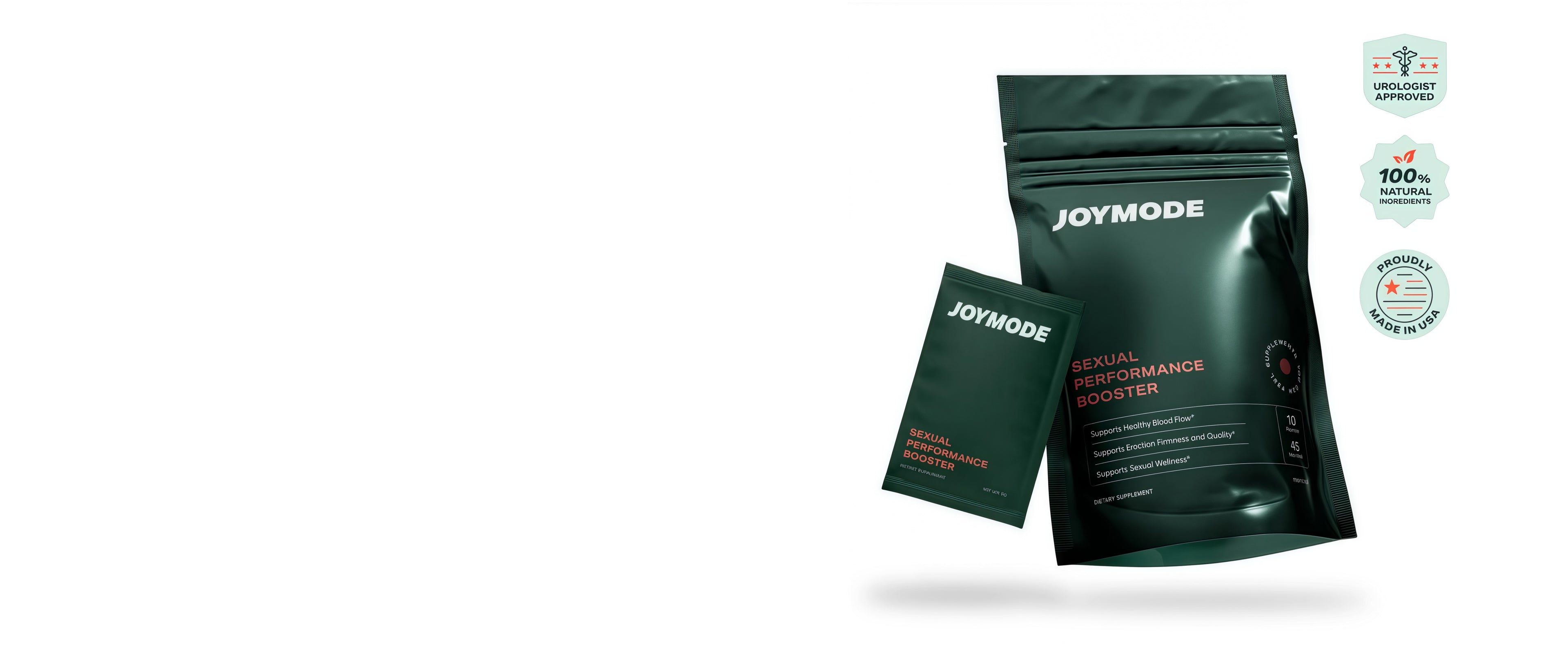 We wanted a healthier, all natural erectile support product, but only had gas station pills and prescription drugs to choose from. So we started JOYMODE and partnered with best-in-class scientists and biochemistry PhDs to create our Performance Booster.